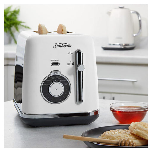 View full detailsSunbeam Alinea Select Collection - 2 Slice Toaster White Different bread types have varying densities which require different cook times. The toas...