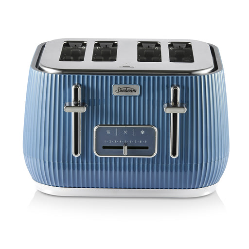 View full detailsSunbeam Radiance 4 Slice Toaster Blue Elevate your kitchen with the Radiance Collection 4-Slice Toaster. With the collection's sleek linear textur...
