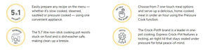 The Crock-Pot® brand is a leader in one-pot cooking. Express Crock-Pot features a locking, air-tight lid that stays sealed under pressure for total peace-of-mind.